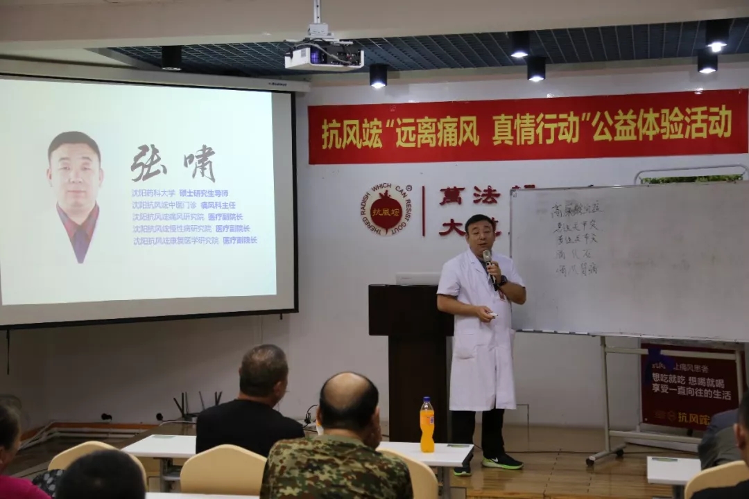 抗風(fēng)竤人用微笑暖了到場(chǎng)患者的心,讓患者對(duì)我們的好感度陡然上升,我們要的不僅是他們的接受,而是要將更多健康知識(shí)、健康理念傳播到廣大痛風(fēng)患者中去。為此,沈陽(yáng)抗風(fēng)竤痛風(fēng)研究院醫(yī)療副院長(zhǎng)、沈陽(yáng)藥科大學(xué)碩士研究生導(dǎo)師張嘯于現(xiàn)場(chǎng)開了一場(chǎng)別開生面的健康大講堂。短短一個(gè)小時(shí)的講座,張?jiān)洪L(zhǎng)從痛風(fēng)的分期、常規(guī)治療藥品的副作用、抗風(fēng)竤如何科學(xué)治痛風(fēng)及康復(fù)案列等方面為患者們深入淺出的普及了關(guān)于痛風(fēng)的健康知識(shí),讓患者清楚了解到只要選對(duì)方法,終有一天會(huì)告別風(fēng)痛,過(guò)上向往的生活。